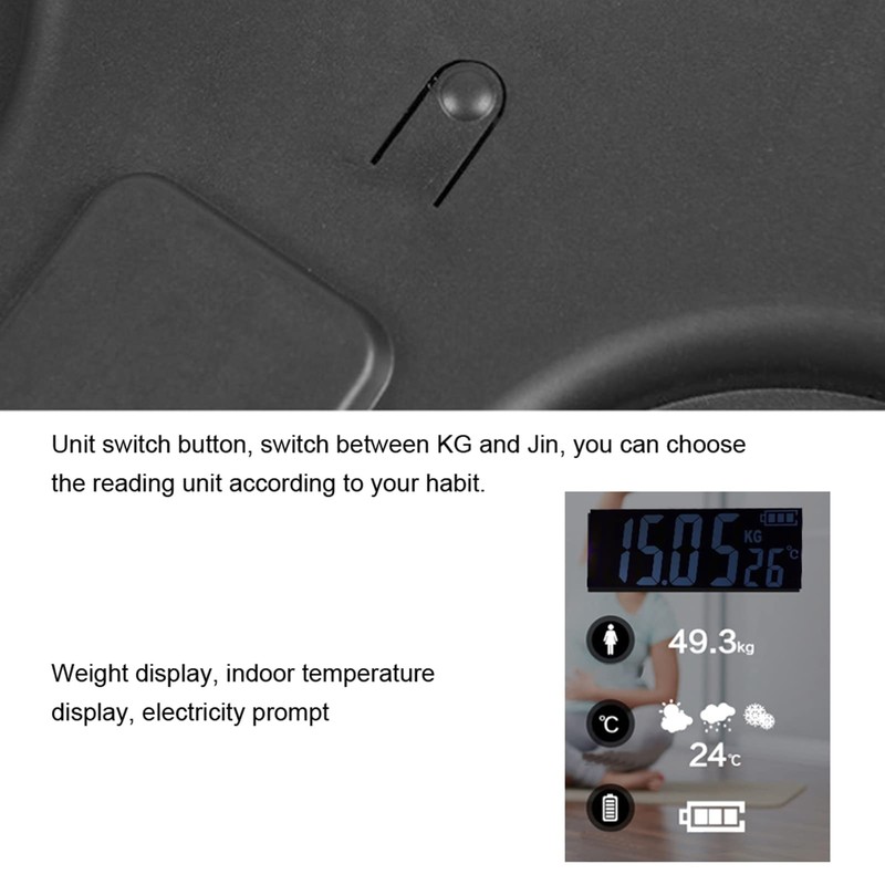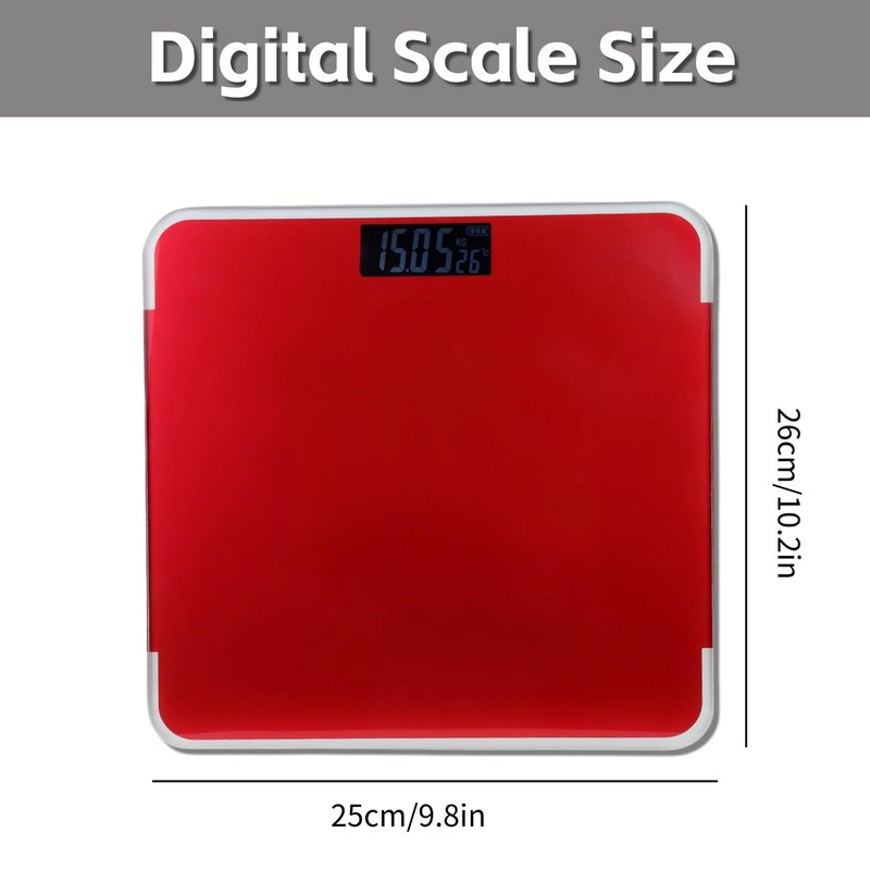 Features:1. AAA battery power supply, low consumption and eco-friendly, battery purchase and installation is very convenient. LED large screen, no matter day or night, the number can be clearly read.2. The fulcrum uses rubber anti-slip pad, which has better anti-slip effect. The bottom of the scale is only 7mm from the ground, which is safe and stable. Unit switch button, switch between KG and Jin, you can choose the reading unit according to your habit.3. High strength tempered glass, firm and shock-resistant, it has better bearing capacity, and the large scale surface brings users better comfort. Smooth and round corners design, which is safe and won't have accidental injury.Specification:Condition: 100% Brand NewMaterial: Tempered GlassOptional Color: Rose Gold, Black, RedWeighing Range: 0.2-180kgScreen Size: Approx. 68 * 24mm/2.7 * 0.9inSize: Approx. 25 * 26 * 2.5cm/9.8 * 10.2 * 1inPackage List:1 * Host1 * Instruction BookNote:1. Monitors are not calibrated same, item color displayed in photos may be showing slightly different from the real object. Please take the real one as standard.2. This product belongs to the household scale category, plus or minus 0.3kg is normal tolerance.Please wait more than 10 seconds for the first use, otherwise there will be weight error.3. In order to the service life of this product, do not place this product in excessively hot and humid environment. Do not pile heavy objects on this product. It should be placed horizontally, not vertically. Do not exceed the maximum value of the said object, which may damage the product sensor.