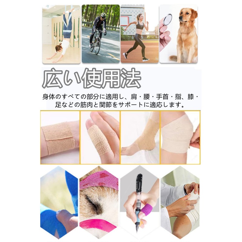- 【広い使用法】:身体のすべての部分に適用し、肩・腰・手首・指、膝・足などの筋肉と関節をサポートに適応します。スポーツラケットやアウトドア用品の滑り止めとしても役に立ちます。
