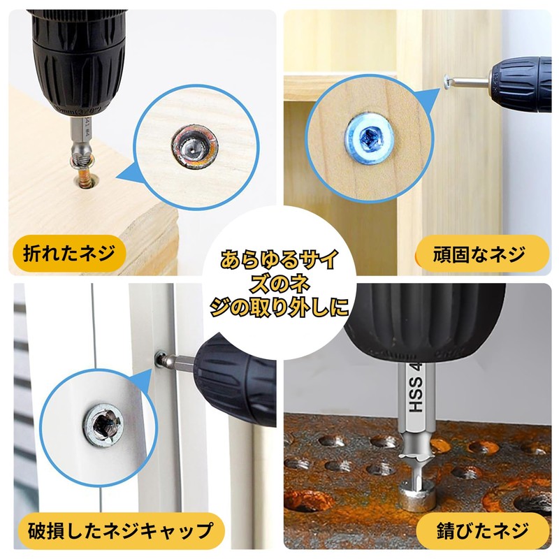 - 【Wide range of applications】: This tool set can be used to drill and screw in a variety of materials such as light metal, wood, aluminum plates, iron plates and more, as well as remove various damaged and twisted screws quickly and accurately. It can be used in a variety of situations, such as home repair, woodworking projects, vehicle maintenance, etc