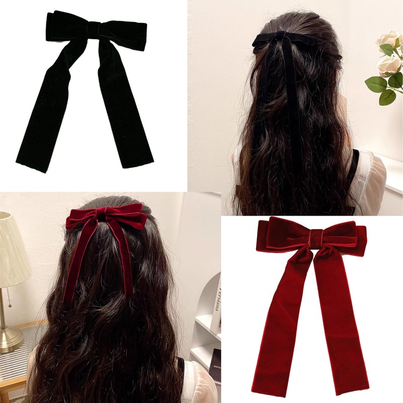 - Elegant ribbon design will match any outfit. This ribbon velvet hair accessory easily holds your hair for an elegant look. It is very easy to put your hair together in the morning with a hair tie. Easy to use, this velour ribbon is designed to be worn in one step by simply tying it to your hair. You can easily create your desired hairstyle, ponytail, twist, long hair or curly hair and our black bow hair tie is very easy to match with your hats, bags or clothes. A perfect gift for your friends, lover, loved ones such as birthday party, beach wedding, daily travel, school graduation, etc