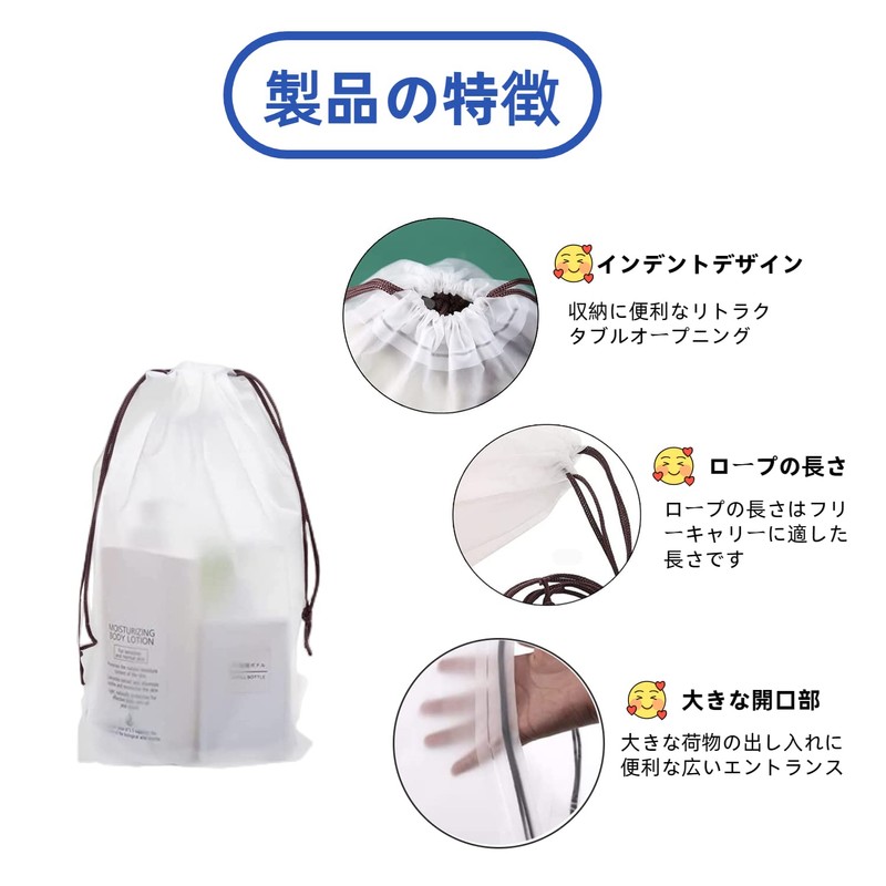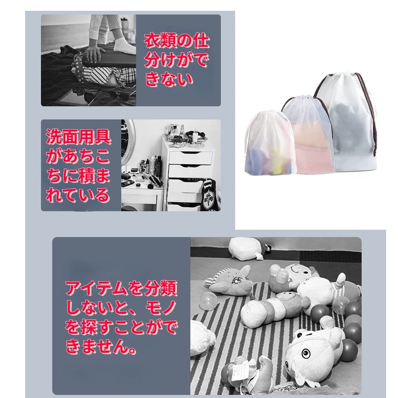 YINKE Vinyl Waterproof Storage Pouch Set Drawstring Bag Drawstring Bag Trinket Shoe Bag Travel Pouch (Size: 18 Sets: 6 Large ; 6 M; 6 Small )