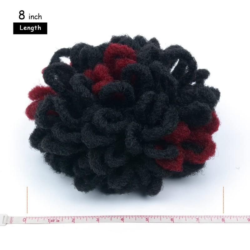 Yinmei Baibian Dreadlock Bun Faux Locs Drawstring Ponytail Dread Loc Petal Buns Afro Puffs Breaded Hair Extension Clip in on Braids Hairpieces for Black Women(1B&Burgundy)