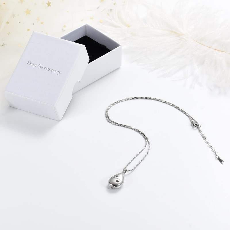 - 【Cremation Jewelry for Ashes Package】Cremation Teardrop Urn Locket Pendant Necklace come with nice gift box+20''chain+2''extension chain+fill kit. This Ashes Pendant Keepsake Memorial Urn Necklace deserves your love, Let's your loved one rest in your arms
