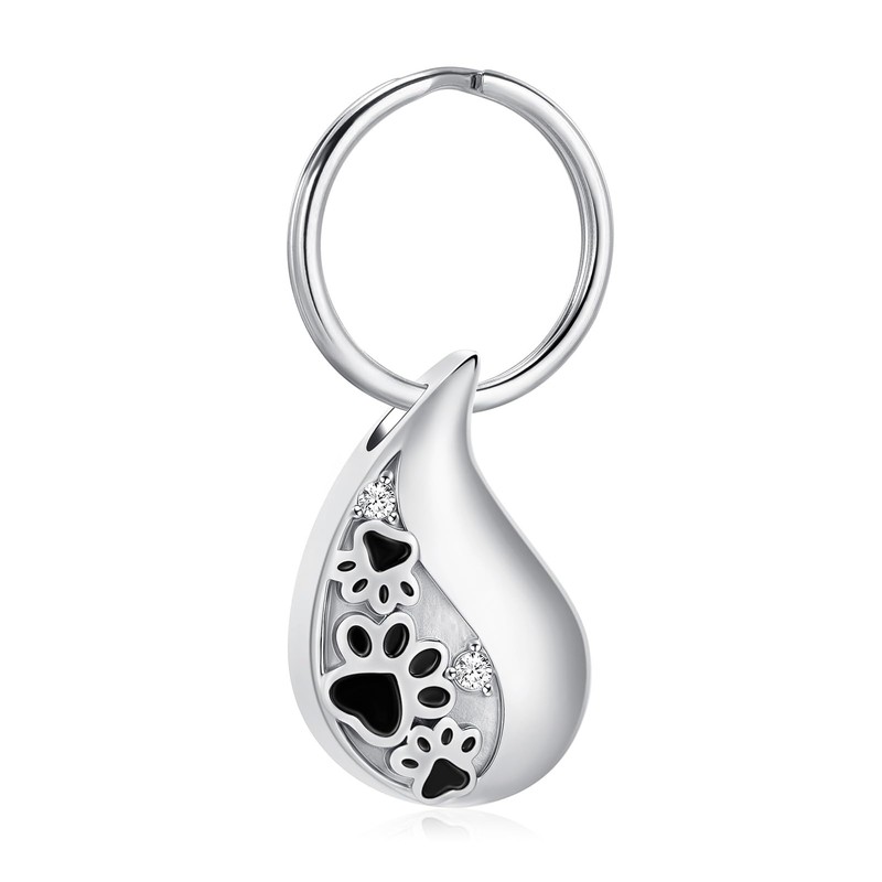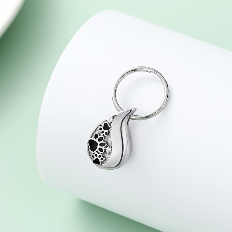 Yinplsmemory Pet Cremation Jewelry Paw Print Urn Keychain for Dog/Cat Ashes Teardrop Key Ring Urn for Ashes Holder