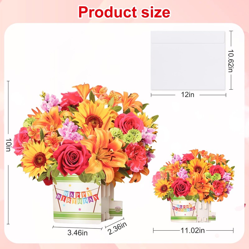 - 【Forever Sunflower Bouquet】10 Inch Flower Bouquet Happy Birthday Card, Each sunflower symbolizes a positive attitude towards life towards the sun, representing adoration and praise. Each lily represents a beautiful blessing, expressing your eternal and deep love for them. Send this card to your mom, grandma, sister, friend, they will be surprised and love it, make their birthday an unforgettable moment.