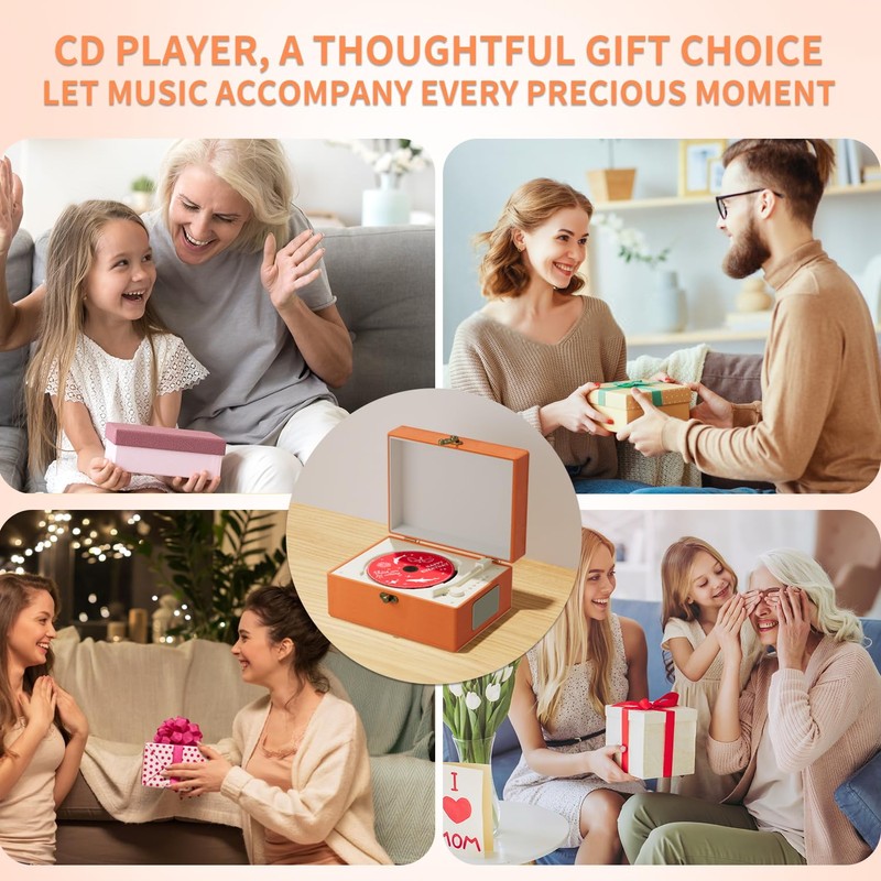 Yintiny Yintiny Time Music Box CD Player with Speakers; Bluetooth Transmitter; Festival Gift; BGM Player for Home Decor (Orange)