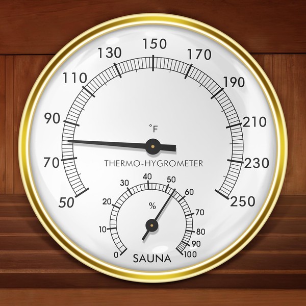 - Wide Measurement Range: The sauna thermometer displays temperature from 50-250 Fahrenheit and humidity from 0-100 percent, making it perfect for steam or barrel saunas, hotels, bathrooms, and more