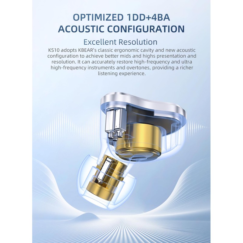 - ▶【Excellent Resolution & Sound experience】KEEAR KS10 in ear earphone employs a single-sided five-unit balanced armature design with a new electronic crossover system that significantly optimizes the integration between 1DD, 3*customized treble BA and 1*independent ultra-treble BA, reducing high-frequency noise and enhancing the resolution of mid-to-high frequencies.10MM composite carbon nanotube diaphragm plays an important role in handling the full-range mid-to-low frequency response