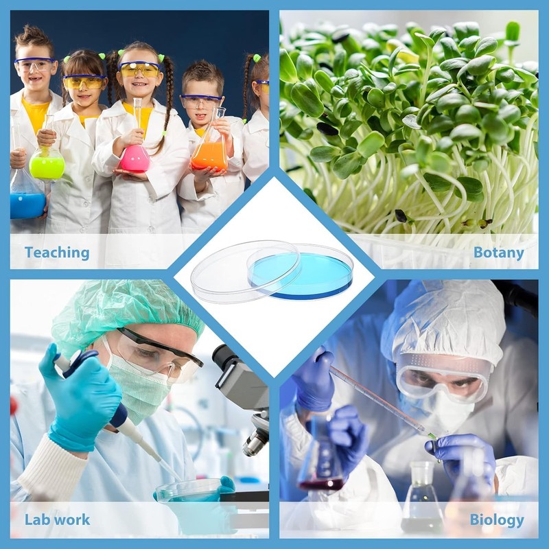 - FLEXIBLE AND VERSATILE These lab petri dishes are suitable for a variety of applications such as bacterial cultures, yeast cultures, microbiological testing and much more. They are ideal for schools, science laboratories and industrial applications