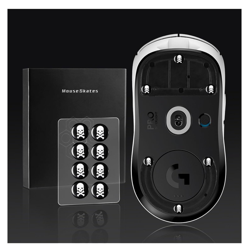 yiodelu Universal Glass Mouse Skates Smooth Durable Thin Ultra Strong Glass Mouse feet Game Mouse Accessories for All Mouse DIY Dots(6mm*8 Pieces Skull Black)
