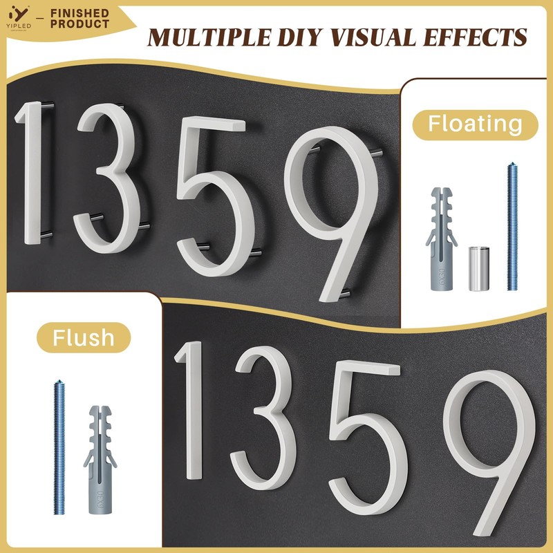 - Versatile Mounting Options: Our house numbers come with versatile mounting options; choose between flush mounting for a sleek finish or floating installation for a contemporary look; customize the appearance to suit your style and home’s architectural design