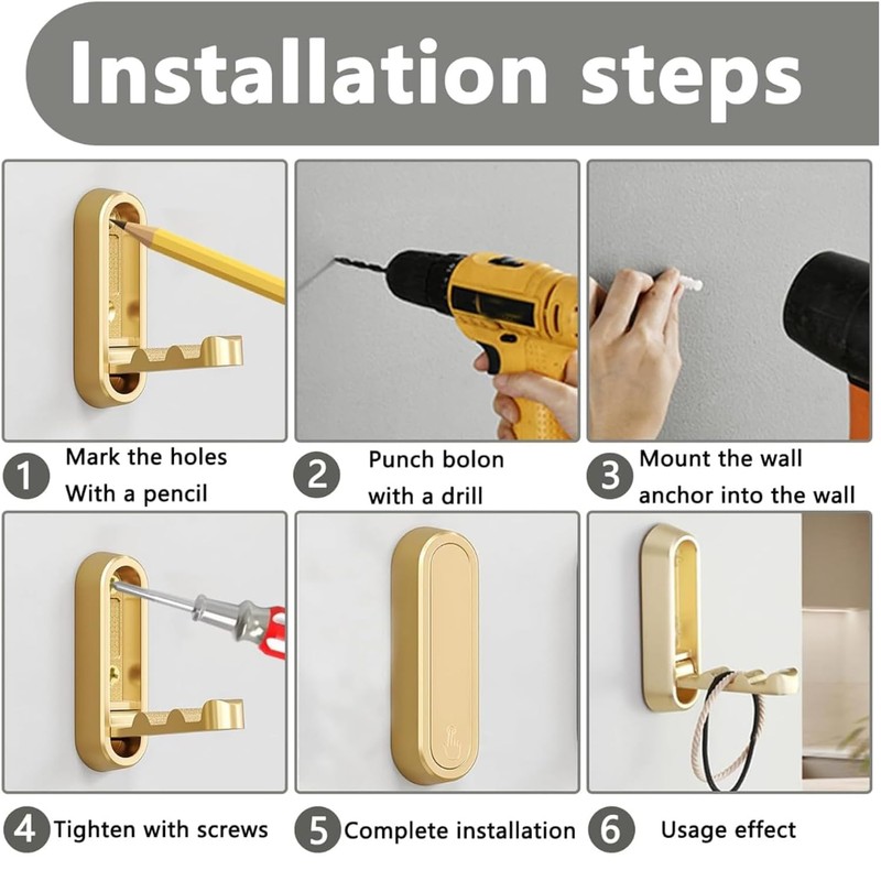 - 【Easy to Install】 The foldable hooks wall mounted comes with screws and anchors.Simply use a drill to install them in your desired location, and the anchors will provide extra strength when installed on wall.
