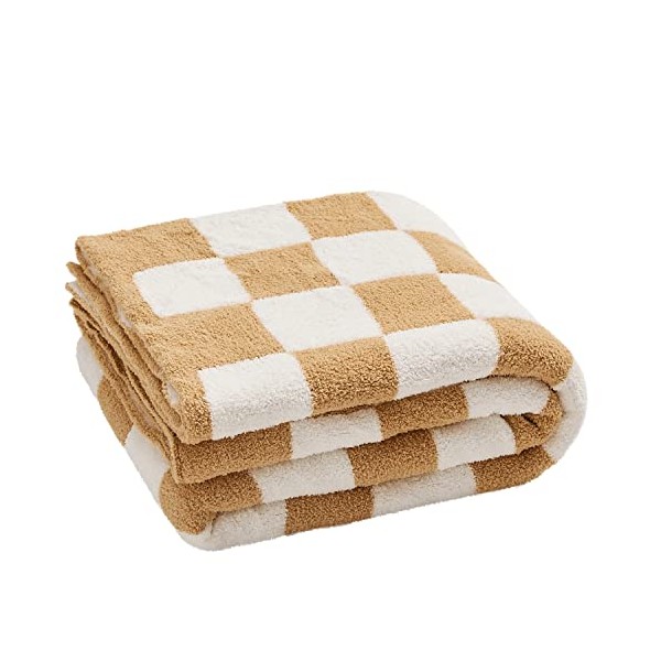 YIRUIO Throw Blankets Checkerboard Grid Chessboard Gingham Warmer Comfort Reversible Long Shaggy Cozy Decor for Home Bed Couch(Burnt Orange, 51''x63'')