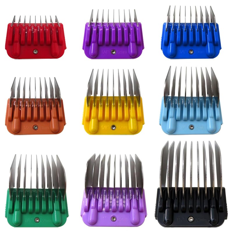 9 Color guide combs for easy identification, effortlessly glide through small, medium, and large-sized dogs and cat coats