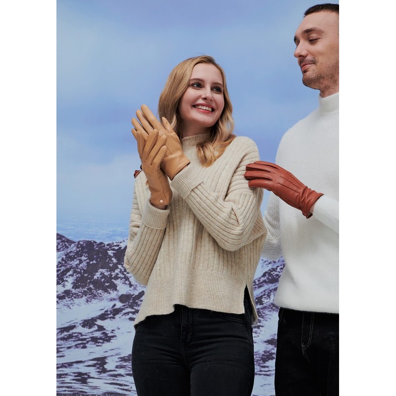 - 100% A-CLASS LAMBSKIN LEATHER - Made of high-quality authentic Lambskin Leather with softness of touch, suppleness, strength and lasting comfort. The leather gloves fit your fingers well and would be your chic Cold Weather essentials.