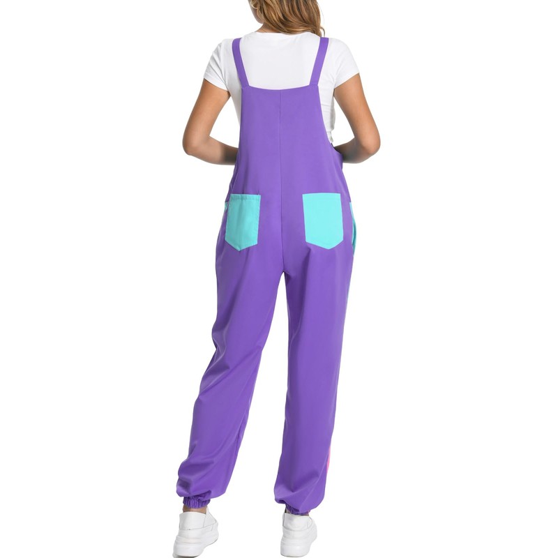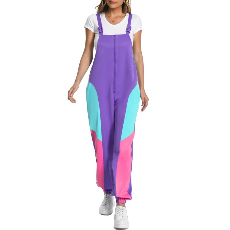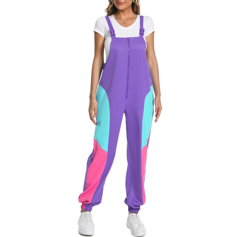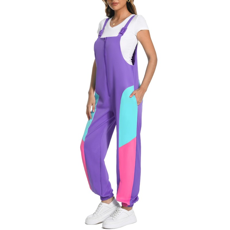 Yisfri Womens Retro 80s 90s One Piece Outfit Neon Windbreaker Overalls Theme Party Jumpsuit Rompers (US, Alpha, Small, Regular, Regular, Purple)