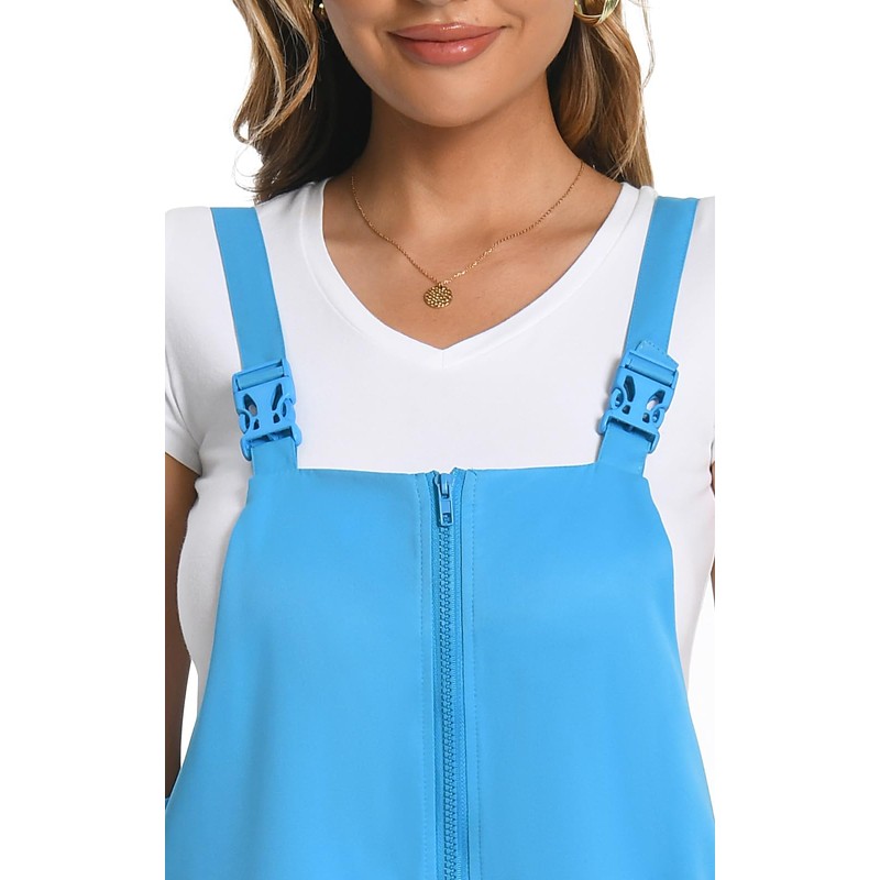 - One piece suit, zip up front closures, cinched cuffs at legs, Adjustable straps with buckle closure, you can adjust the length according to your preference and comfort.