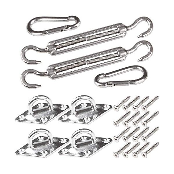 Yision 8 Piece Heavy Duty Sun Shade Sail Fixing Kit for Garden Triangle and Square, Rectangle - 304 Stainless Steel Sun Shade Sail Fixing Hardware Accessories Kit