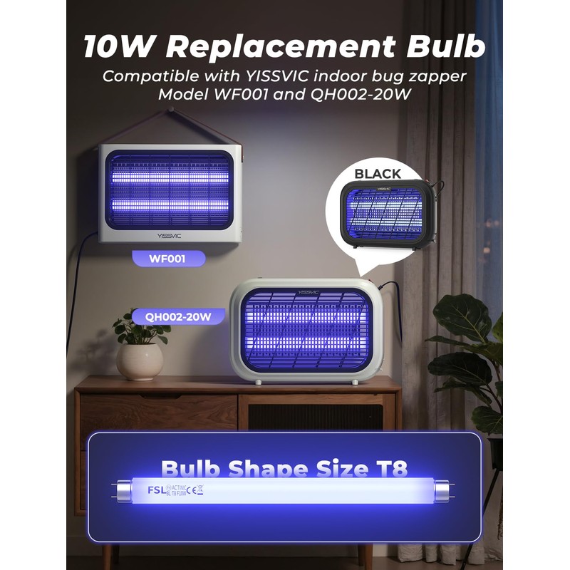 - Long Life: Light bulb designed with a long lifespan, and it is easy to replace and use. Replacement bulbs can be used for counters, cabinets, wardrobes, kitchens, offices, and more. If you purchased YISSVIC QH002-20W or WF001 bug zapper, you can get this bulb to replace. 5 years support from YISSVIC.