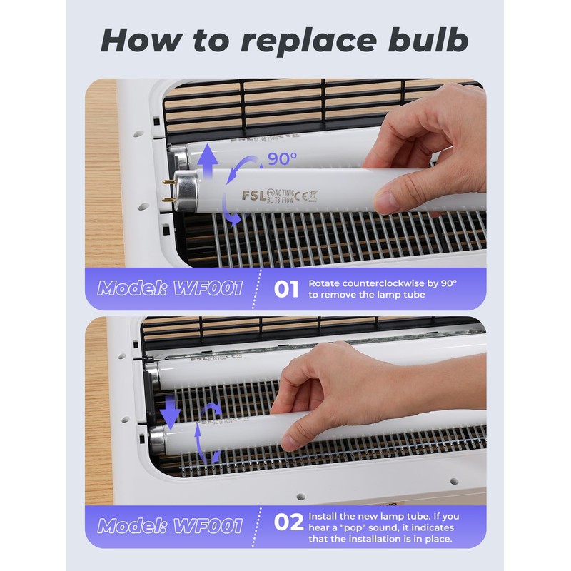 - Cutting your budget: with a longer lifetime and accurate mosquito luring. The fluorescent light tube produces 80% more UVA energy. You can rely on effective performance for the life of the bulb.