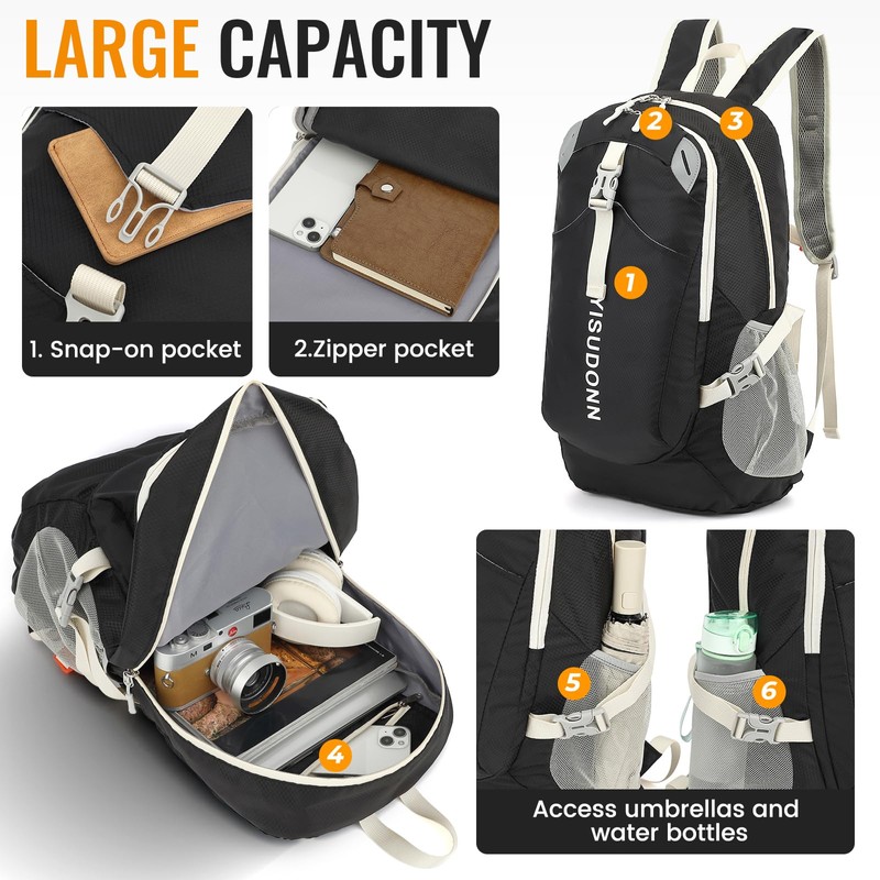 - Foldable Backpack: This travel backpack can be easily fold into its own pocket for storage; Ideal comfort for daily use or day trips, holiday, travel, hiking, camping and shopping.