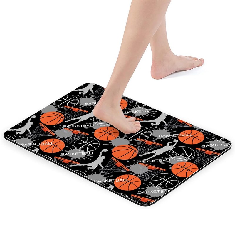 YISUMEI Basketball Bathroom Mat, Non-Slip Super Absorption Bath Carpet with Rubber Backing, Fit Under Bathroom Doormat Floor Rugs for Shower Buthtub Sink, 16"x24"