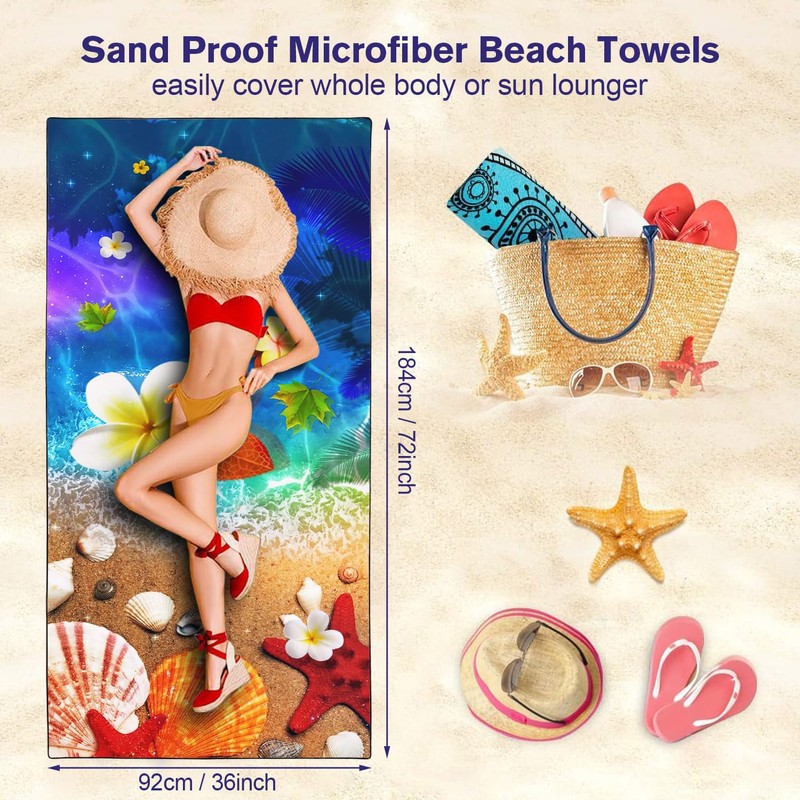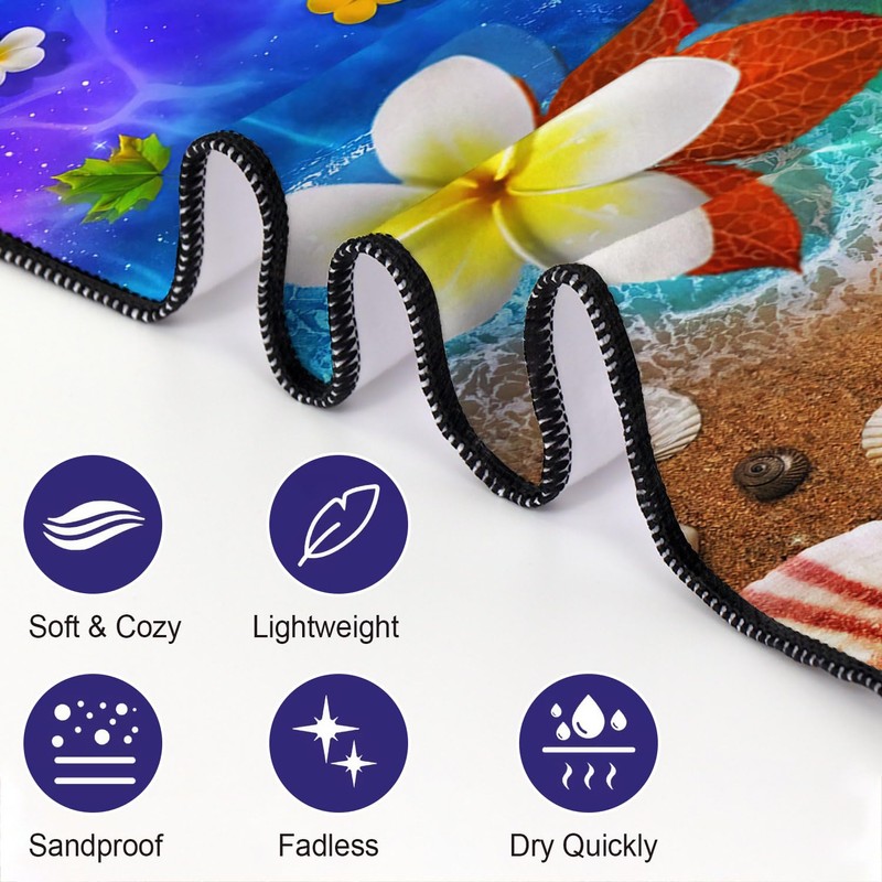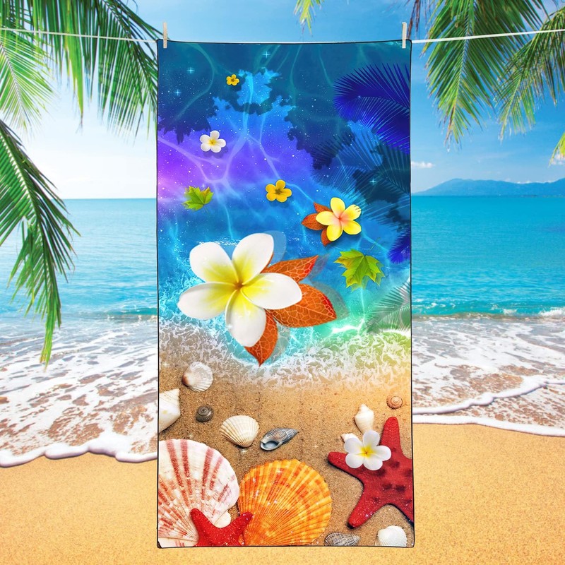 YISUMEI Microfibre Beach Towel XXL Beach Towel Lightweight Beach Towels Quick Drying Flowers Shells Starfish 180 x 90 cm