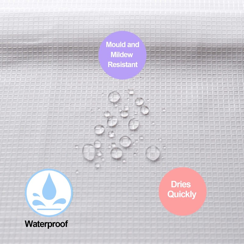 - Modern and Fashion – The Waffle pattern shower curtain is good-looking and modern, suitable for many kinds of bathtubs in home, hotel, school, apartment, college dorm room, athletic club, gym, RV and more.