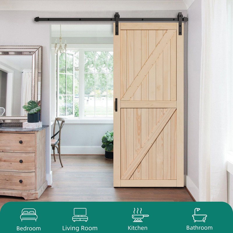 - K-Frame Design: This sliding door features a K-shape design that makes the boards more stable. Our barn door panels are pre-drilled for easy assembly and won't take long to install.
