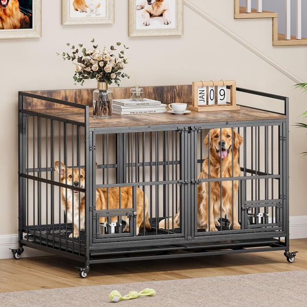 - Multifunctional Dog Cage with Bowls: The Dog Crate Furniture is equipped with 2 360° rotatable stainless steel dog bowls, which are convenient for feeding without opening the front door. The double-door design of the doghouse is not only convenient for entering and exiting the dog house, but also conducive to your interaction and feeding with the dog. The dog cage can also be used as a side table to save space, and the spacious desktop provides additional storage space for pet supplies