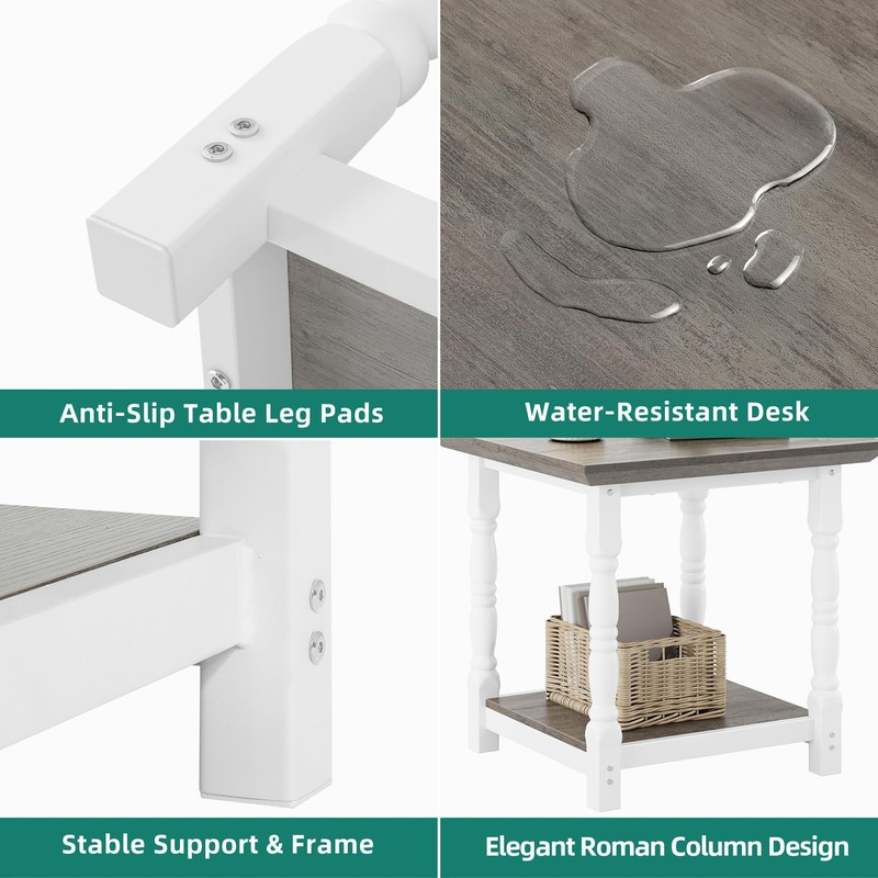 YITAHOME Accent Square Side Table with 2-Tier Open Shelves & Roman Column, Heavy-Duty Coffee End Table for Living Room, Bedroom, Small Space (Sandstone Gray)