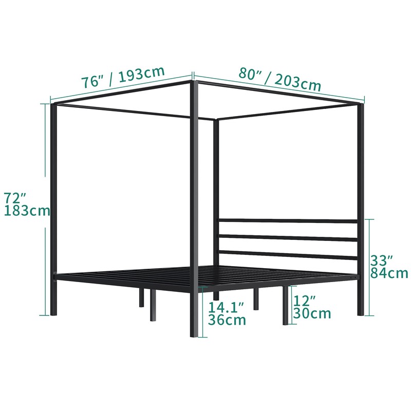 YITAHOME Metal Four Poster Canopy Bed Frame 14 Inch Platform with Built-in Headboard Strong Metal Slat Mattress Support, No Box Spring Needed, Black, King Size