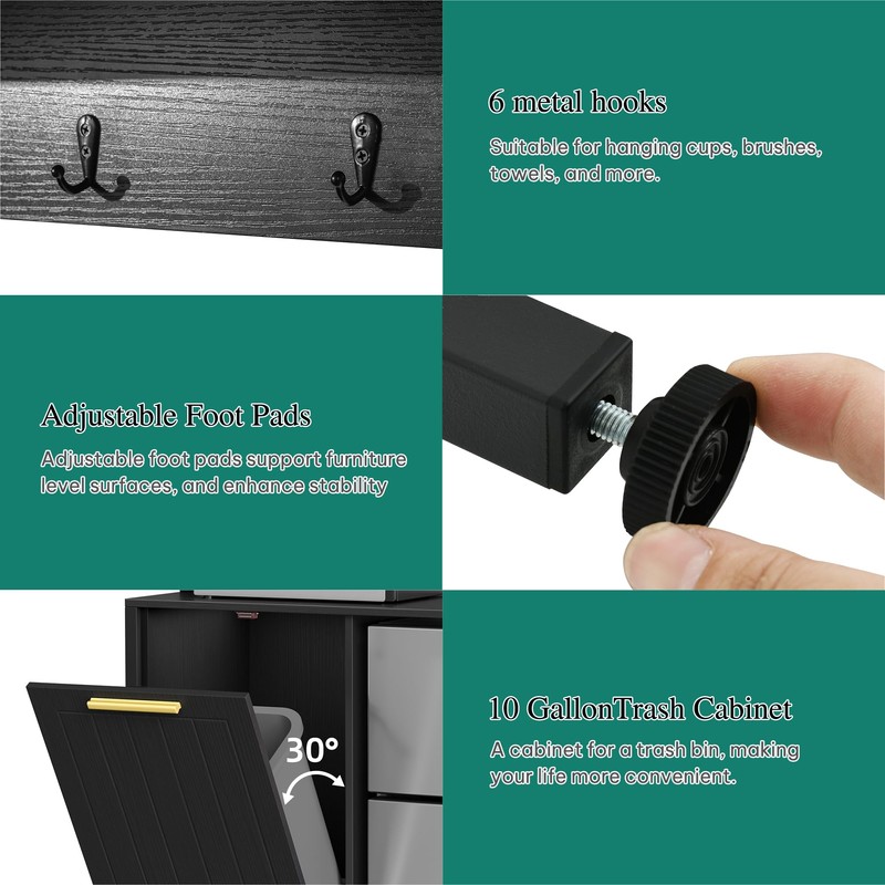 - Easy To Install: The trash can cabinet comes with detailed instructions and all required hardware. Each part is labeled with letters or numbers, making the assembly process straightforward and hassle-free