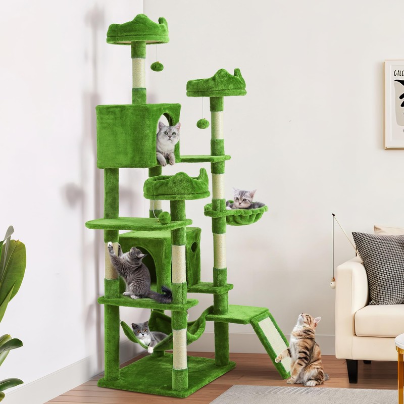 YITAHOME Tall Cat Tree Tower for Indoor Cats, 75in Multi-Level Cat Climbing Tower with Cat Condos, Top Perches, Hammock, Sisal Scratching Posts and Board, Kittens Play Activity Center, Green