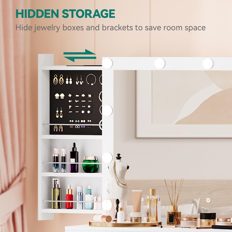 YITAHOME Vanity Desk with LED Mirror, 4-Drawer Makeup Desk