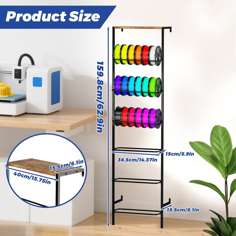 - 【Versatile And Ideal Gift】The 3d printer stand with filament storage is suitable for use in homes, printing studios, school classrooms, workshops, garages, basements, and other locations. Wire spool rack helps users keep spools organized and tidy, improving printing efficiency. 3d printer shelf makes an ideal gift for 3D printing enthusiasts or professionals, combining practicality with aesthetic appeal.