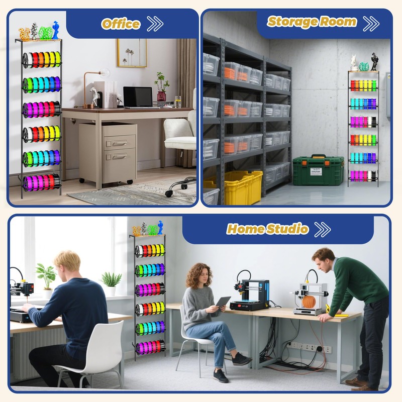 - 【Layered Organization, Quick Access】The modular layered design of filament rack allows different types of filament to be categorized and stored as needed, effectively preventing tangling and damage while improving filament management efficiency. The open structure enables easy access to spools from any direction, enhancing efficiency, making the entire printing workflow smoother and more efficient.