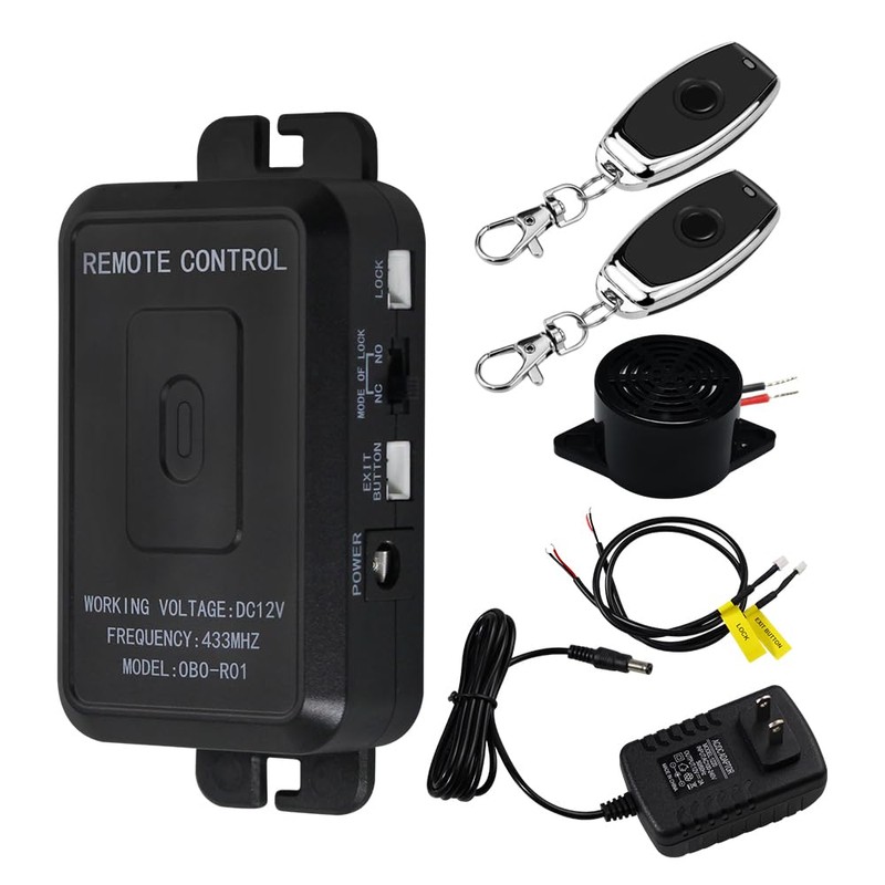 - Features: The main feature of this kit is that it allows you to open the door simply by pressing the wireless RF remote instead of moving to the door physically when someone visits. The remote communicates with the receiver, which can program up to 40 remotes, and it has a range of 98.43 feet/30 metter.