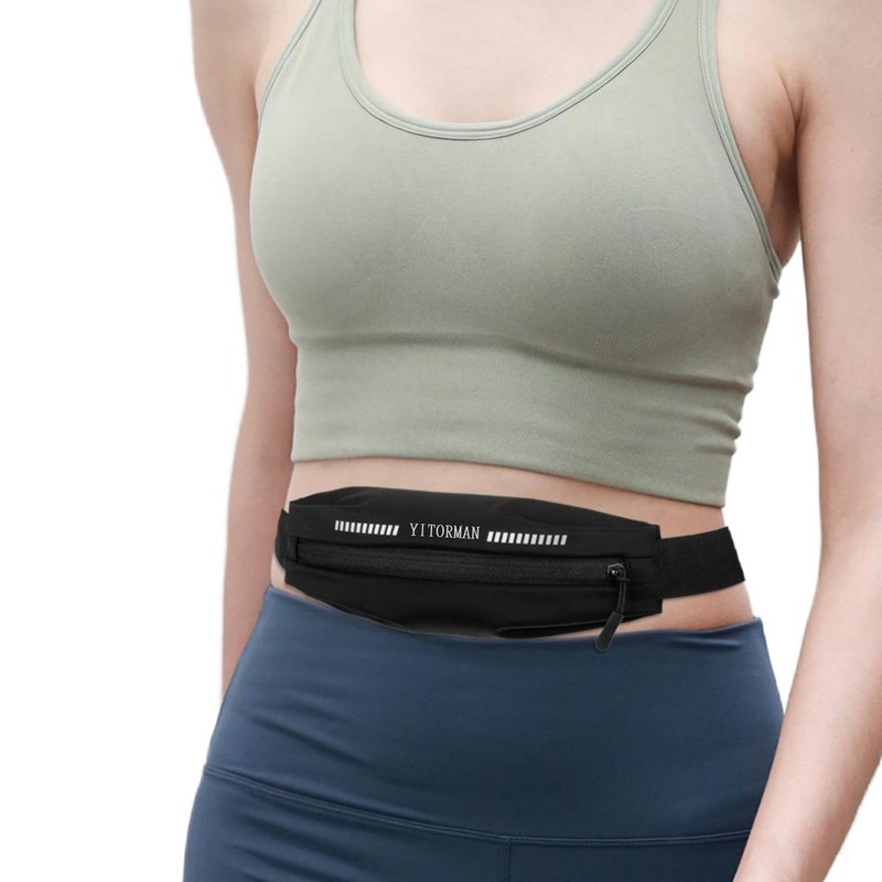 YITORMAN Slim Running Belt, Runners Fanny Pack for Women and Men, Reflective Run Waist Belt for Workout Jogging with Headphone Port, Running Gift Gear (Black)