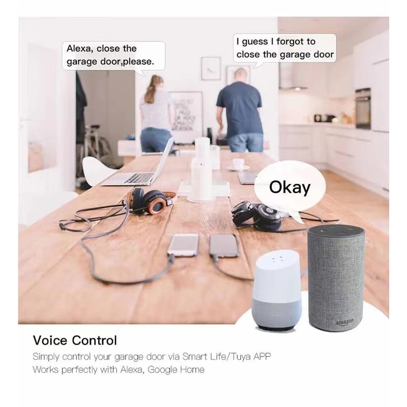 Conveniently open & close your garage door by turning your existing WiFi networkand garage door opener into an single integrated smart device,that you can control and monitor from around the World. Activate your garage door opener either through simply tapping on the mobile app or by giving voice commands to your Alexa or Google Assistant enabled devices.