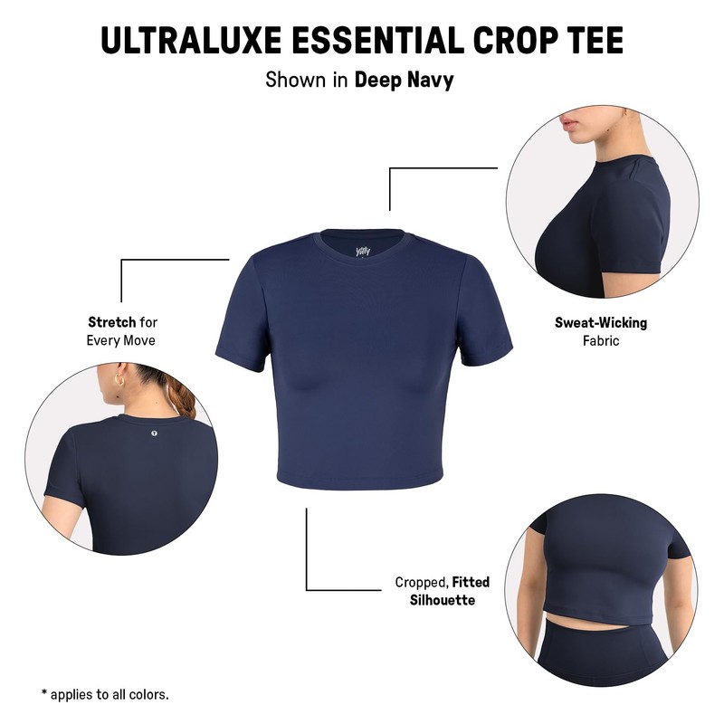 YITTY Active Women's Ultraluxe Essential Crop Tee, Athleisure, 4-Way-Stretch, Beach Party, XL