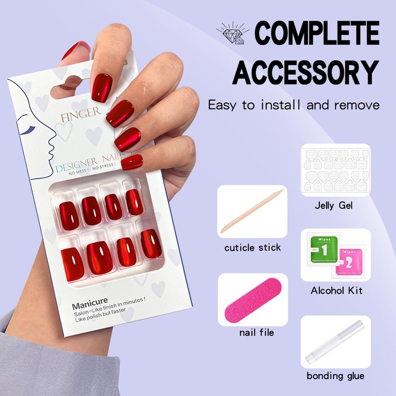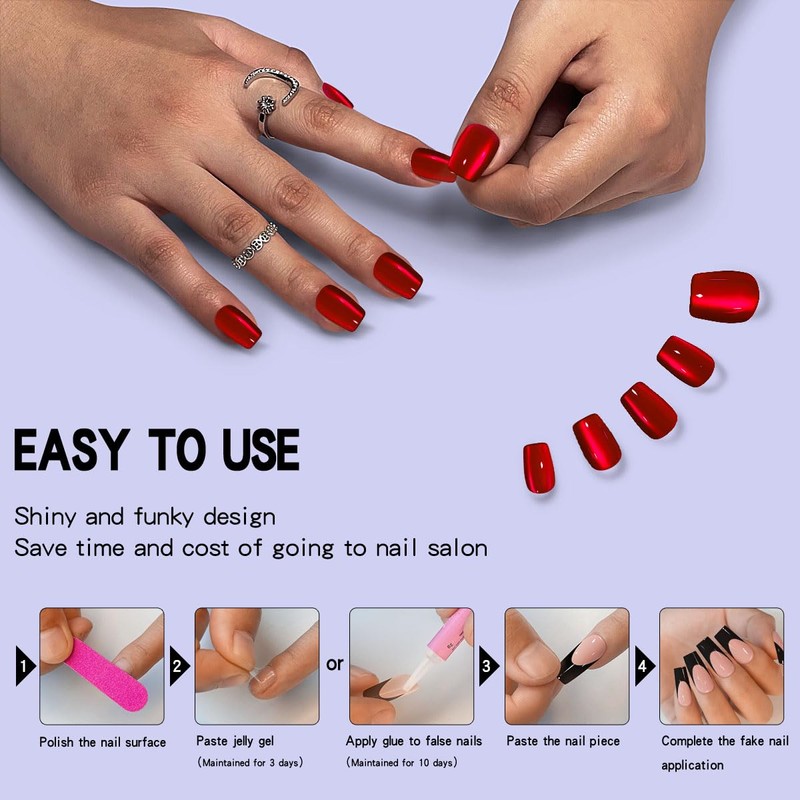 • 🌟high quality best press on nails: made of high quality acrylic and environmentally friendly abs material, the red nails are of high quality and durability, even after long time wearing, the press on nails medium will not be faded or deformed, and still maintain a high luster.