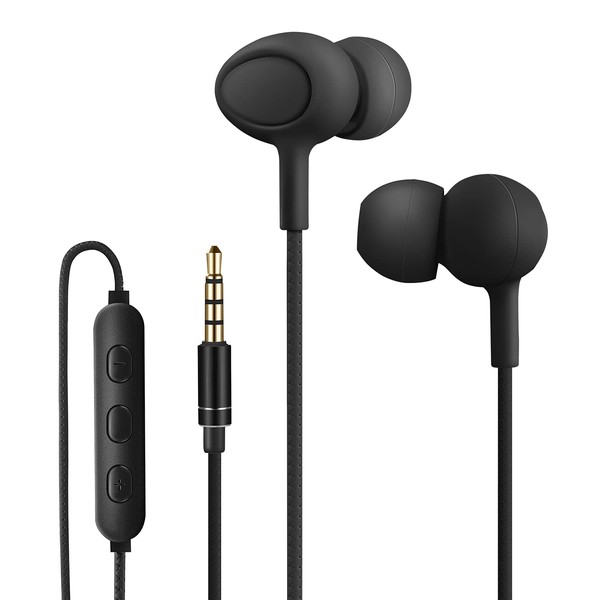 Yiwiso Sleep Earphones, Comfortable Wired Earbuds for Small Ear Canal Side Sleeper, Noise Isolating, In Ear Headphones with Mic for Sleeping Snoring, Air Travel, Relaxation, Black