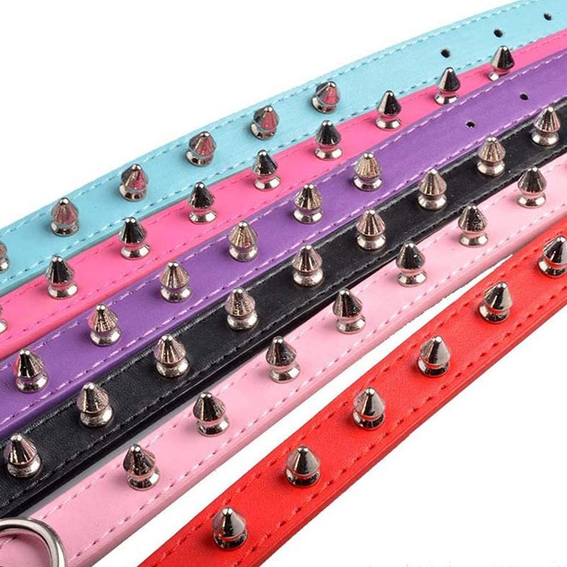 Yiwong Spiked Leather Dog Collar, Bullet Nail Rivet Dog Collar, Adjustable Dog Collar with Spikes