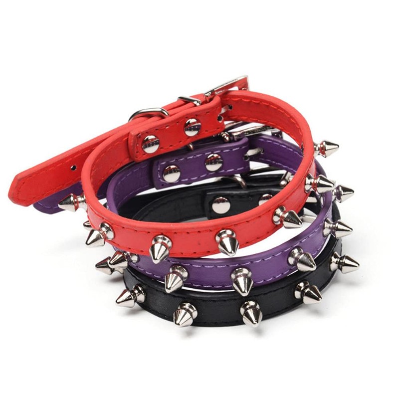 Yiwong Spiked Leather Dog Collar, Bullet Nail Rivet Dog Collar, Adjustable Dog Collar with Spikes