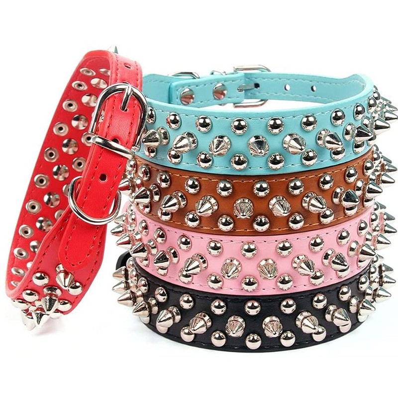 Yiwong Spiked Leather Dog Collar Lead Set, Bullet Nail Rivet Dog Collar, Leather Dog Collar with Studs, for Medium, Pitbull, English Bulldog (S, Blue)