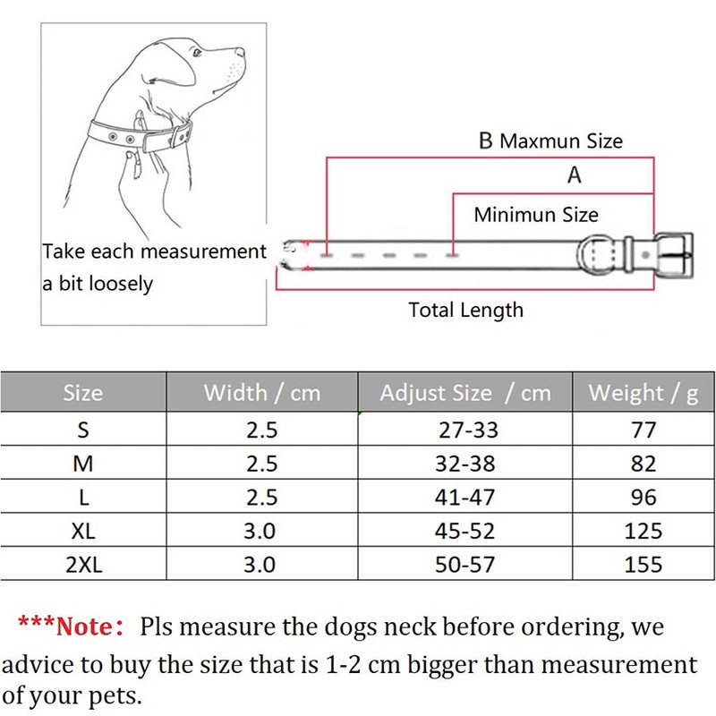 - Note: Please measure your dog's neck circumference with a soft tape measure before ordering.