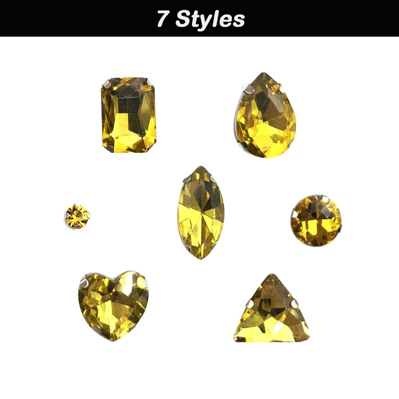 - Number and shape: each pack contains 236 pieces of rhinestones to sew on, set and sewn. 6 x large triangle, 6 x large tear, 6 x love heart, 6 x rectangular, 6 x horse eye, 6 x large round, 200 x small round