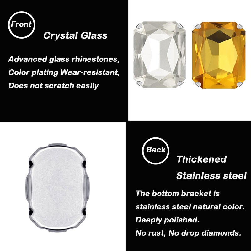 - High-quality glass material: Yixinly sewing rhinestones are made of high quality glass, look like real diamonds and sparkle more. The metal claws of the glass stones are made of silver-plated stainless steel, and the claws on the base hold the rhinestones firmly in place, so you don't have to worry about the rhinestones falling off!