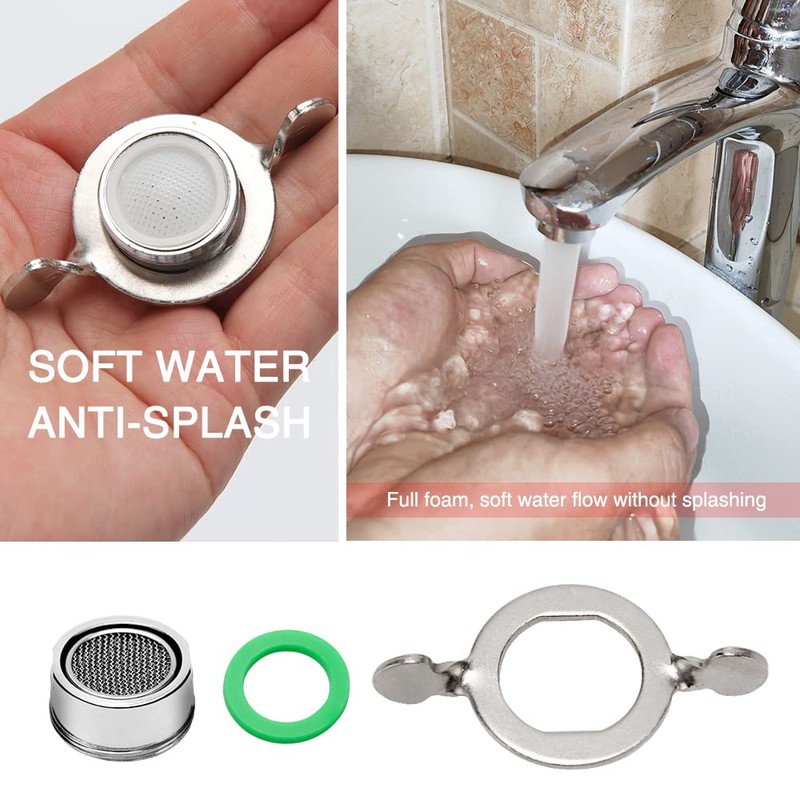 - Practical Design: This faucet aerator has a double-layer, stainless steel and ABS Filter, which not only can filter out most of the sediment, lime and impurities, but also limit water flow and saves water. This mixed tap aerator can drawing in air to make water flow bubbled, prevent splashing water and reduce faucet noise.